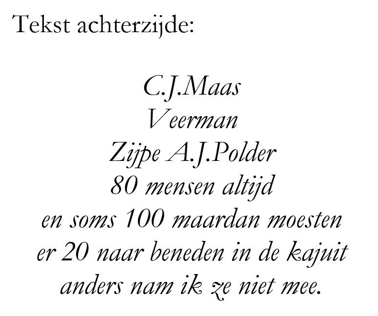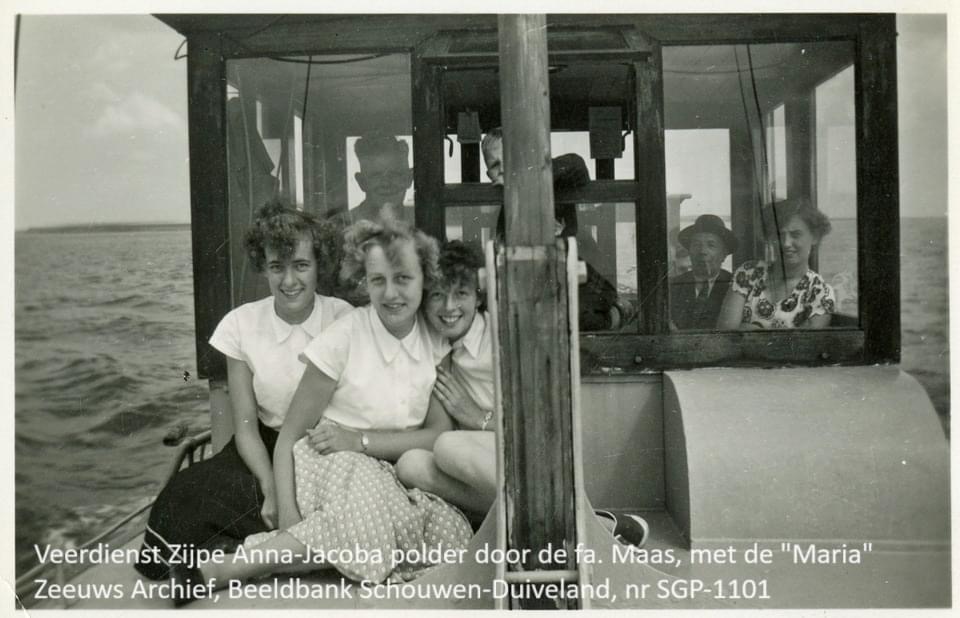 De Maria heeft van 1923 tot 1965 tussen (voornamelijk) Zijpe en Anna Jacobapolder een dienst onderhouden voor fietsers, bromfietsers en voetgangers. Zoals we zagen was dat geen geregelde dienst, maar voer zij op verzoek van de reiziger, ook bij nacht en ontij.