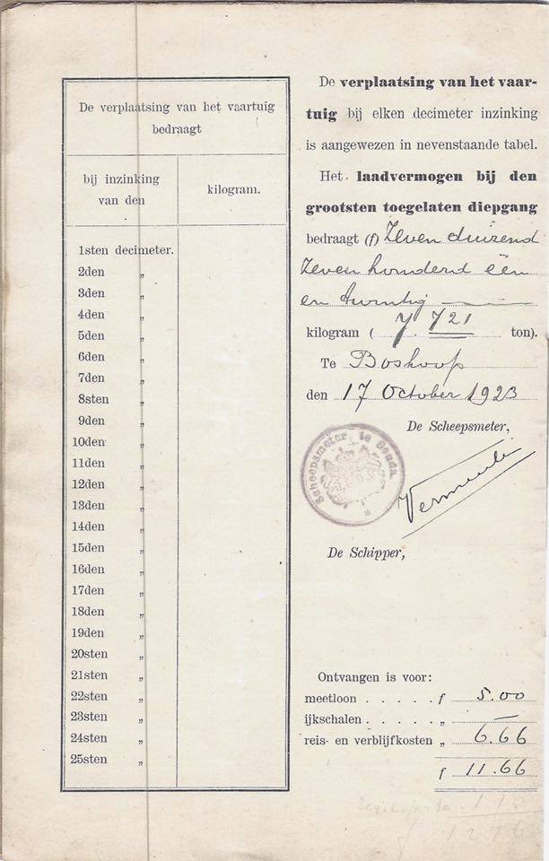 Het schip is bij Akerboom ook gemeten. De meetbrief is met de witte navigatiepijltjes (of door te swipen) door te bladeren.