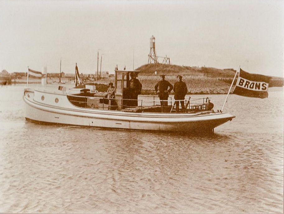 Eind oktober of november 1923: de vermoedelijk eerste foto van de Maria: aankomst in het haventje (Zijpe) bij Bruinisse. De Maria komt hier mogelijk rechtstreeks vanaf de bouwwerf. De motor (een Brons 12pk) zou – zonder enig mankeren – tenminste tot 1965 dienst doen.
