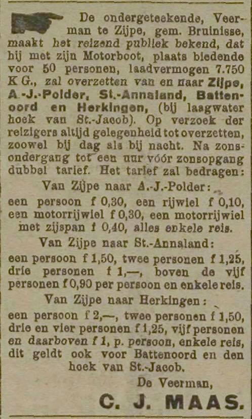 En zo maakte veerman C.J. (Nelis) Maas de start van de veerdienst met de Maria bekend aan het reizend publiek.