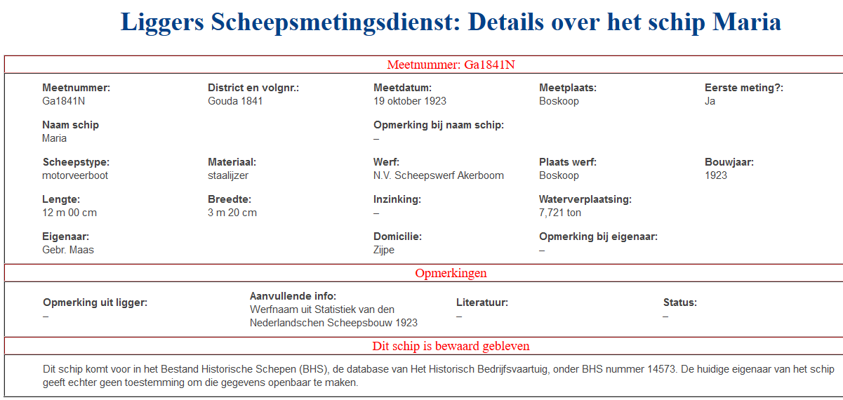 Het schip is bij Akerboom ook gemeten. De meetbrief is met de witte navigatiepijltjes (of door te swipen) door te bladeren.