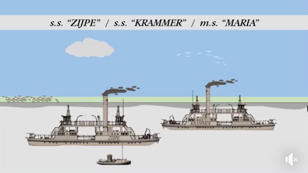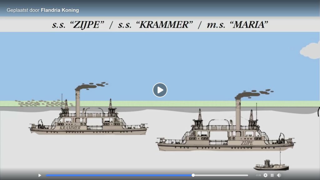 Flandria Koning heeft een prachtige animatie gemaakt van de Krammer, de Zijpe en de Maria, die elkaar op het Zijpe ontmoeten. Hieronder twee stills.