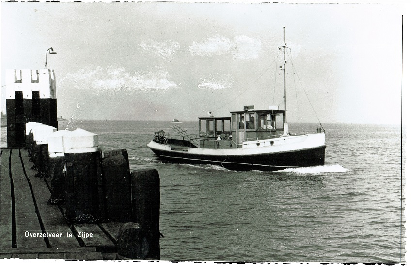 Onderstaande foto hangt in groot formaat in ’t Veerhuis in Anna Jacobapolder. Vanuit dit veerhuis exploiteren Eric en Karin Moerland vandaag de dag in het zomerseizoen een veerdienst over het traject Zijpe – Anna Jacobapolder voor toeristen.