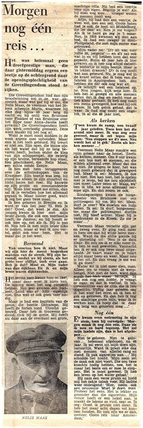 “Toen kwam de ramp [Watersnoodramp in nacht van 31 januari op 1 februari 1953] (…) Ik was nog over geweest, maar ik zei tegen mijn vrouw ‘Nou stoppen we d’r mee. Nou wordt het al te gek.’ Zeeën als kerken, meneer.“